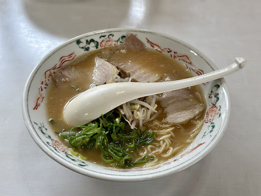 お店の外観が、思ったより小さくびっくりしましたが、中に入ると、地元の現場でお仕事されてそうな常連さんが数人店長さんと談笑していて常連さんがメインの客層なのかなと思いました。 あとは店自体が古いものっぽいので、潔癖の方は入れないと思います。 席での対応などは丁寧にしていただきました。 メニュー写真などは無かったのでとりあえず今回はチャーシューメンをチョイス。 やってきたチャーシューメンは、器の周りにずらりと並んだチャーシュー、更に真ん中にももやしの上に鎮座するチャーシュー!圧巻です。 薄めに切られたホロホロのチャーシューなので、割とペロリと食べきれました。 これで1000円なら安いと思います! 麺は細麺で、ふつうよりちょっとやわめかな?と思います。 味は豚骨醤油系で、臭みは無くしっかりめの味...