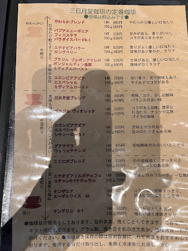 1年前の投稿………………… メインの通りから路路地を入ったところにある こじんまりとしたお店ですが、とても雰囲気が良く、仕事で防府へ来る度に寄っています。 オリジナルブレンドのコーヒーがたくさんあっていくつか飲んだのは全部美味しかったですが、三日月堂ブレンド ほんと美味しいです💕 今日は 12時までやっているモーニングのあんこトーストを頼みましたが、パンがとても美味しくて あんこも生クリームも 甘さ控えめでくせになる美味しさでした💗 今度は...