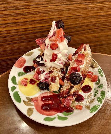 デザートには、大好きなデニブラン・チョコバナナを注文しました。このデザートは、何度食べても飽きることがなく、特にバニラアイスと温かいデニッシュの組み合わせが絶妙です。そこにチョコソースとバナナが加わることで、甘さと酸味、そしてサクサク感が見事に調和しており、まさに至福のひとときでした。これを食べるためにサンマルクカフェに来ると言っても過言ではありません。