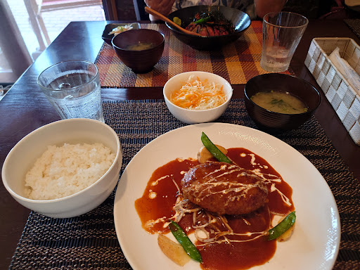 主人がステーキランチ、私がハンバーグランチ。