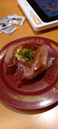 Read more2021/10/24のことだが、この店にはサーモンがなかった?!!マグロと並ぶ売り上げを誇るあのサーモンがだ!(炙りチーズサーモンはあったが普通のサーモン、とろサーモンはなかった) しかし目を注文タッチパネルから横に向けてみるとフェアで一皿に3貫のって150円の広告あった。このフェアは10/24まで売り切れ御免!となっておりレーンに流れてこない、タッチパネルにも存在しないで、女の店員に聞いてみたところ「売り切れました。」とのことだったので諦めデザートのパフェを食べ始めたときになぜか件のサーモン3貫が流れてきた。 パフェは違う男の店員に出し直して貰ったが、結局最後まで女の店...