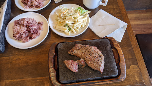 åããŠã®èšªåãè¿æã«ãã£ãããããªãâŠããæ€éããŠããŸã£ãã®ã§ãæãã¢ã¯ã»ã¹å®¹æãªæé ãªã¹ããŒãå±ã¯ãããããããŸããã å ¥åºåã«å ¥å£åã«çœ®ãããã¡ãã¥ãŒçæ¿ãäžç¥ããå ¥å£ãã¢ãæãç®ã®åã«åžå£²æ©ã«ãŠæ¹ããŠäœãé£ã¹ãããææ¡ãããä»åã¯ãã¹ãžã«æ±ºå®ã çŒãç«ãŠã®ããã®åºã®å£²ãã§ããæº¶å²©ãã¬ãŒãã®äžã§ãžã¥ãŠãžã¥ãŠé³ãããŠããçšããããã£ã¢ã ã«ä»äžãã£ãã¹ããŒããéããªãå°çãæ³šææã«çŒãå æžã¯èãããªãã£ãã®ã§ãããã£ã¢ã ãéåžžä»æ§ãªã®ããªïŒ åäžã«ã¯è²ã ãšã¿ã¬ããœãŒã¹ãçšæããŠããããèã®æšå³ãå ªèœããã«ã¯ãã·ã³ãã«ã«å¡©ã³ã·ã§ãŠã§å³ããã®ããã¹ãããã¹ãžèã¯ç¡¬ãçããªãã匟åã«å¯ãã çµæ§ãªåã¿ããããã®ãåããšèæ¬æ¥ã®æšå³ããžã¯ãªã𿻲ã¿åºãŠããŠããããèãé£ã¹ãŠãããšå®æããã倿®µã®å²ã«ã¯ãã£ãããšããéãããããªããªãæºè¶³ãããããŸããã