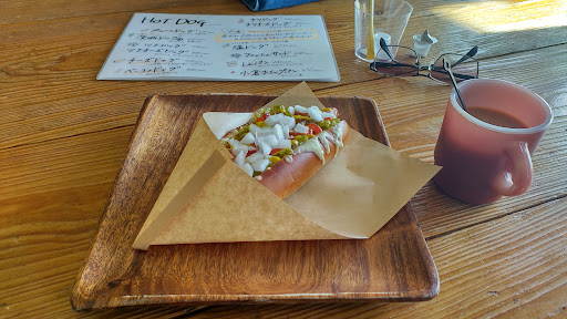 Read more2022.4.30日訪問しました。 国道51号線を走行中に、視界に入って気になりUターンしました。 とてもファンキー&ファンシーな趣きに、入店するか少し悩みましたが、思い切って入店。 店内を眺めていると、米国の田舎に有るレストランみたいな印象を受けました。 レジの前にいた店員さんに『店内で食事は出来ますか?』と訪ねたら、元気良く『はい出来ます』との事。 早速ホットコーヒーとチーズドッグを注文して、レジで支払いを済ませて席へ。 (料金の支払いは後払いでもいいみたい…) 店員さんが近付いて来たので(随分早いんだなぁ)と、思っていると(ソースが選べます)との事。 (なるほど、支払いの時に言って欲しかった…) チーズドッグは700円…少し高い気がしたけど、食べてみるととても美味しい! 意外と妥当な値段かな? コーヒーは300円…こちらも妥当かな? 後から入店したお客さん達は、着席してから注文していたので、多分それがここの遣り方だと思います。 定食やアルコール類も有るので、この辺りの人達にとっては、ファミレス感覚なのかな? 店内はライダーハウスみたいだけど、気軽に入店出来るファミレスだと思ってください。 チーズドック美味しかったです! 追伸 珈琲カップがプラスチック製…。 素敵な陶器の意匠...