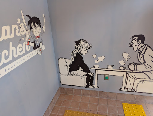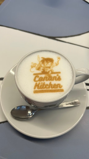Read moreConan-Tische, Conan-Kaffee, Conan-Tapete... wer aus dem Conan-Museum kommt, Freund oder Freundin der Serie ist und eine kurze Verschnaufpause benötigt, kann hier eine Kleinigkeit Essen oder Trinken und sich im ganz wie im Anime fühlen.