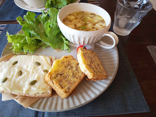 Read moreネルドリップのコーヒーと紅茶などのドリンク、日替わりのケークサレやスープ、手作りパンのサンドイッチやスコーンやケーキのどれも美味しいです。 注文してからお茶やコーヒーを丁寧に用意して下さるので、少しゆっくりめに時間を見て行く方がいいかもしれません。 もと旅館の建物の一階にあり、入り口でスリッパに履き替えます。小物やクッキーなども入口で購入できました。レジも旅館の入口部分のところにあります。