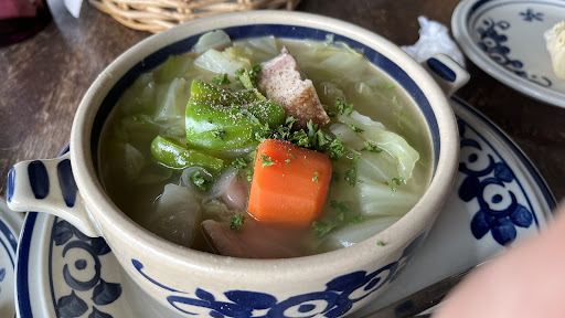 Cozy cafe restaurant with a nice view of the farm. With tables inside and outside, they offer hearty homemade food, mostly soups with lots of vegetables and bacon. I ordered the tomato spaghetti, also soupy...