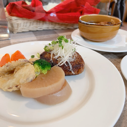 鹿のハンバーグ、クセがなく、食べやすい。むしろシンプルハンバーグより、コクがあって鹿の方が好みだった。 どちらもほわほわジューシーな食感。 オニオングラタンスープも、丁寧に作られたというか、都内の良きお店でいただいているようなお味。美味しい。