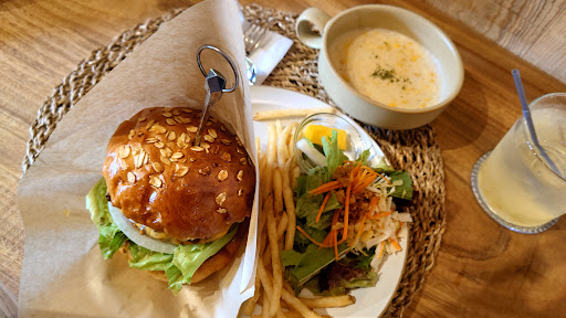 Read more平日ランチに伺いました 満席に近かったですが待つことなく着席できました しかし料理の提供時間がかなりありました WWバーガーのスープドリンクセットとプリンを注文 いろんなハンバーガーを食べてきましたがかなりおいしい! パンがすごいおいしい!パティがジューシー!ソースがうまい!って飛び抜けた感じではなく、オーソドックスな組み合わせなバーガーですがバランスがとても良い! 自家製バンズにレタス、トマト、玉ねぎといったオーソドックスなラインナップですが、バンズはふかふかながらもしっとり、パティは超粗みじん、レタスはしっかり折ってあり食べごたえは十分! スープはコーンスープでしたが、どちらかと言うとコーンシチューに近い感じでおいしかったです プリンもかなりレベルが高い! かなり甘さ控えめな硬めのプリンに苦めのカラメルと甘すぎないゆるめの生クリーム、純ココアの苦みがベストマッチ! 全部かなりおいしかったです 気になった点はお店のキャパが結構あり、客に対して料理の提供が追いついてないと感じました コーンスープが先に提供されてから結構な時間が空いてからのバーガーの提供だったので待ってる間にスープが冷めてしまいました 待ってる間にスープでも飲みながら待っていたいと言う方もいるでしょうし、せっかく雰囲気もよい環境なのでせめて一言そこら辺を気遣える接客があればもっと良いお店になると思いました ここら辺はカフェ、パン屋、イタリアンなんかがいっぱいあるので尚更ですね ともあれ料理はおいしかったの...