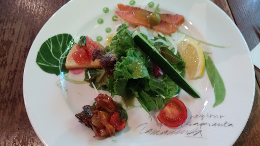 暖炉で調理という独特のお店、しかし単なるパフォーマンスでなくしっかりと素材を生かした料理でとても美味しくいただけます。 料理は基本的にすべてコース料理となりますがそれほど高いものではなく、前菜、スープ、主菜、デザート、ドリンクとなっております。 まあ、料理が美味しく凝っている分、デザートやコーヒーなどはそれほどでもないというのがちょっと残念かもしれませんがそこまで完璧を求めるようなレストランでもありませんので また、平日の昼時でしたがネットから予約を入れていきました、その時にさりげなく「妻の誕生日で」と書いておいたらデザートのプレートに「HappyBirthday」という文字と共にお祝いの言葉を頂きました、こういう気遣いができるお店はうれしいです。 場所はこんなところに?という場所ですが逆に周辺には何もなくゆっくりとした時間が流れていてとても良い雰囲気でした、 駐車場へ入るのに少し狭くアプローチに段差があるので大きい車や車高が低い車は気を付けないとだめですね、 また、ネコが周りにいっぱいいました、飼ってる?それともノラに餌をあげてる?よくわかりませんが駐車場脇でスモークの仕込みをしている横でネコたちが集団でみていたのは...