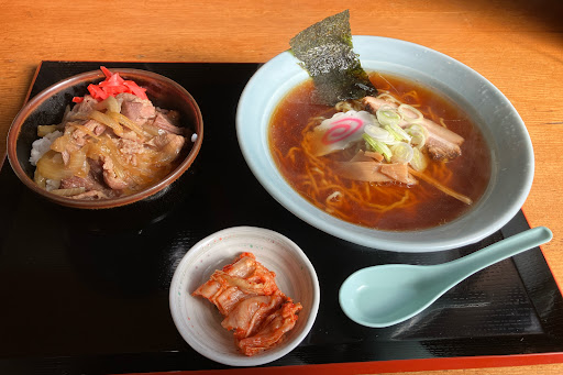 ラーメンは素朴な醤油で少し甘みのある鶏ガラベース。 チャーシューはホロホロだけど少し塩辛いかな。 肉めしは茶碗に入っていて豚肉と玉ねぎを甘辛く煮たのが乗ってます。 豚肉は少し硬めかなー 肉の量からしてご飯が多めなので、付け合わせのキムチ(辛い)でいただきました。 ボリュームからするとラーメンと肉めしのセットでこの価格は安価です!