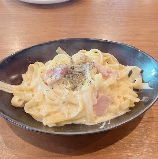 Read moreランチタイム1時半頃に利用。 他のお客さんが帰り始める頃だったので、車で5分位だけ待ち入店。子連れだったので親切に入り口付近の個室風座敷に案内して頂きました。ただ換気はこまめにしてる様子ではないのに、エアコンはつけておらず、寒かったです。 イカナポリタンブラックと辛いカルボナーラを注文し、サラダ、ドリンク、アイスのセットをつけました。ドリンクは食事の前にということだったが忘れていた様でパスタがきた頃に持ってきてくれました。アイスコーヒーに入れるミルクが腐ってました。3つ開けましたが全て。残念です。パスタは普通。麺は美味しいです。 辛いカルボナーラは辛いのが好きな自分でもかなり辛かったです。食後のアイスも待っていてもなかなか来ません。お客さんが帰り始めて片付けに夢中の様です。ガチャガチャなってました。自分達の他にあと一組しかいないのに忘れられていて悲しかったです。 後片付けに夢中でなかなか声もかけれず だいぶ待ったので帰ろうとしたらアイス出てないですよ?いらないんですか?あーそー、みたいな感じで調理?店主?の男性のスタッフの方にに言われました。びっくりしました。一言すいませんと言ってくれてもいいかなと思いました。全部客から言わないと出てこないお店って入る前に言ってほしかったです。席に呼び鈴とかも置いていないし、そうだったのかもしれませんが。ホールの女性スタッフさんは優しそうで頑張っていたのでちゃんと教育されて...