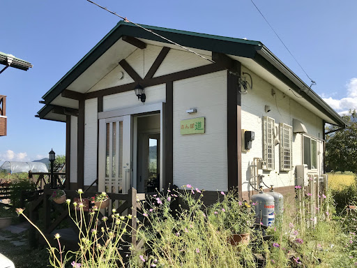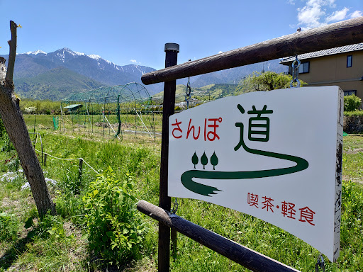 Read more美しい田園風景を眺めながらお茶をするならここ、さんぽ道。5年前にオープンした可愛いお店です。駐車場は2台。店内はテーブル席が3つ、カウンター席は実質2〜3人程度。南から東に視界が開けたテラスにもテーブルが3つ備えられています。テラスのすぐ前が田圃で、南アルプス地蔵岳を背景に白州町横手から武川町柳澤にわたる田園風景が広がります。中でも9月末から10月上旬、収穫を間近に控えた金色の田園は絶景です。この時期、白州、武川界隈は秋桜がそこここに咲き乱れ、さんぽ道もピンクやパープルレッドの花に包まれていました。 お味の方はお値段がリーズナブルでちょっぴりお洒落な家庭料理と言ったところでしょうか。行楽客のいない、何もない午後、美味しいコーヒーを飲みながら、ただただ田園風景を眺める・・・。そんな時間の...