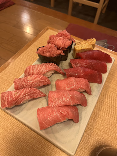 Read more日曜日の19:00に2名で予約無しで来店しましたが、ほぼ満席でぎりぎりカウンター席に座れました。握り盛り合わせ上と、まぐろ三昧盛り合わせ上頼みましたが、こちらも新鮮ネタで素晴らしかったです。和食メニューも多数あり、黒板におすすめメニュービッシリ書き込んでありました。大ホッケ焼を頼みましたが、ホントに大きいのでビックリしました。味も油のってて美味しかったです。 地元の方に愛されいるようで、入店者同士知り合いの方もいるみたいで与板雰囲気でした。 夜の部は予...