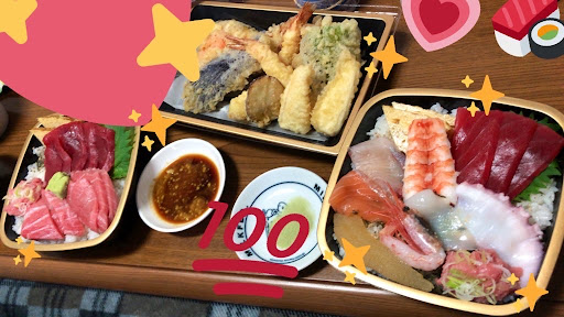 その場でメニュー見せてもらって“並チラシ”と“上鉄火丼”と“天ぷら一人前”を注文♪15分くらいで丼が完成✨待ってる間にウーロン茶だしてくれました!(暖かいの用意できなくてごめんねってまた気遣いして頂いたことにも嬉しく感じました)そこから10分しないくらいで天ぷらが完成✨(もう作ってるところ見てるだけでネタや野菜の色が美しいし、店内はホコリなんて見つけられないくらい綺麗で、流石レビュー高いとこだなーなんて思ってた😌💕)ワックワクで持って帰ってきて食べたらなんとまあ!ホント美味しい!まさか自分が「ほ、宝石箱や〜💎😭💕✨」なんて言うことがあるとは思いませんでしたw 天ぷらには抹茶塩が付いてて、ガッツリ付けてしょっぱくなっちゃったので次から工夫して付けて食べたいです😅また絶対買いに行く!お味噌汁も(インスタント)だけど付いてて嬉しかった!次は店内で食べられたらいーなー(...