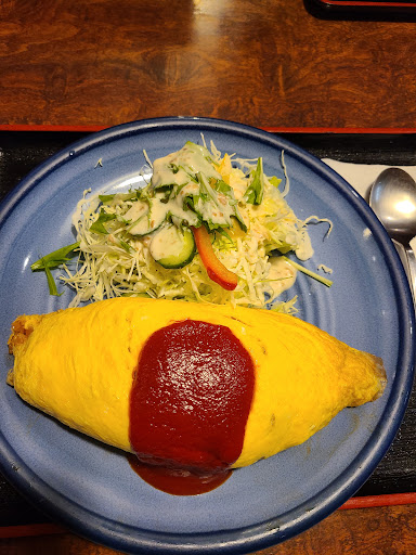 私は鴨汁そばを、彼女はオムライスを、そして単品でカニクリームコロッケを発注! 値段が手頃なので鴨肉が固いのは仕方ありません。最近、アレルギー性鼻炎のため香りを楽しめなかったのですが、そんな私でも蕎麦は美味しいと思いました。説得力に欠けますかね?😅 オムライスは昭和を感じる懐かしさがあって、なおかつボリューミー!具材もゴロっと入っていて食べごたえ満点。彼女には厳しそうだったので少し分けてもらいました。 そして衣サクサク、中はトロっとしてクリーミーなカニクリームコロッケに撃沈!!北海道出身の俳優さんの得意技「美味しくて白目をむいて気絶する」状態になったのでした。 あと、付け合わせのサラダの野菜たちが新鮮で、特にパプリカのパリパリ感が良かった! 客が私たちだけだった┅ということもあったと思いますが、帰るときはお店の皆さんで見送っていただき、アットホームな雰囲気に癒されたのでした。