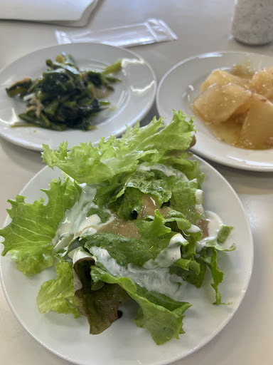 お惣菜バーがあり、料理が出来るまではそこのを取って待ってる様にとのことでした。 お惣菜は4種類ありました。ヘルシーな感じでどれも美味いです。 それだけでお腹いっぱいになりそうです。
