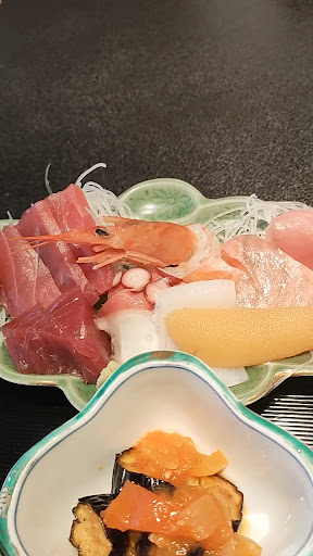 こちらは、大手の仕出しをやられていた頃から、腕の良い板前さんがいらっしゃるはずと気になっていました 屋号が変わっても職人さんが同じならきっと美味しんだろな~と思いつつ。3月の日曜日、11:40、5組(20名)待ちで諦め、後日祝日11:05着で、すんなり座ることができました、ランチで初来店です 祝日でしたが平日ランチメニューが適用されててお得でした おまかせ握り ランチ、おまかせ 刺身定食にソフトドリンク付きで1480円を2人でいただきました 9種の魚、ふんわり茶碗蒸し、ナスのイタリアン風な煮物、サラダでした ご飯は大盛無料です ...