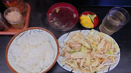 ●肉野菜炒め(500円)+ライス(300円)みを注文。 まず、駐車場は広く良い感じ、店内は音楽無し調理場の音だけで居心地が悪い、メニューには写真全く無く不親切。