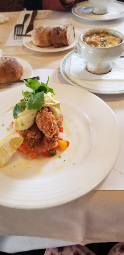 店員さんが少ないせいか提供には時間がかかってます。 先ずはサラダからです。 そのあと肉料理、魚料理、パンの順です。 若鶏のブランケット煮込みは具が沢山入っており味も良いです。銀杏とか久しぶりにいただきました。 白身魚のほうも味付けも良く美味しくいただけました。 全てにおいて美味しいです。 ただ、パンもそうですが、自分にとっては量が物足りないかも。いつものがっつく様なお店ではありませんが😆 食べている間はあっという間のひと時でした。