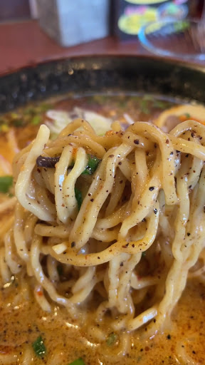 まずこちら、辛みそラーメンがめちゃくちゃ美味いんです。奇を衒いすぎず、王道の味噌ラーメン道をちゃんと進みながら、辛味噌やトッピングで個性を出してくれているラーメン。めちゃくちゃ美味いです。やはり王道は王道なのです! そしてちぢれ控えめなちぢれ麺もちょうどいい量の味噌のスープを絡めてくれて、ラーメンの完成度をより高いものへ昇華してくれます。