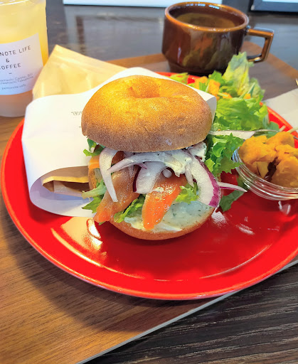Read moreインスタで紹介されていておしゃれな外観に惹かれて楽しみに行きました。内装もシンプルかつ韓国ドラマに出てくるようなスマートさでくつろぎやすい雰囲気でした。 しかしながら、残念に思うことがありこの評価にします。まず一つは、BLTサンドを注文したかったのですが、11時時点でSOLDOUTでした。これは元々用意が無かったのかなと思いました。さらに、SOLDOUTはレジにあるメニュー表にのみ貼ってあり、外のメニュー表や陳列の並びにあるメニュー表には貼っておらず、レジ前で戸惑ってしまったところ、店員さんに注文を急かされました。平日で他のお客さんは一人だけの状況にもかかわらず。 1000円の「チョイスベーグルランチ」を注文し、選んだ無花果くるみ&クリームチーズのベーグルは美味しかったです。 食後、おみやげにベーグルを購入して帰ろうと思い、LINEクーポンの貼り紙があったので、店員さんに対象のベーグルはどれになるのか尋ねたところ、ここでも無愛想に見ればわかるでしょうという態度で返事をされ残念になりました。初めての来店なのでどんなベーグルなのか聞いて選びたかったのですが、親切ではないなと感じました。ベーグルも準備ができていないのか陳列が少なく焼き上がりを待つような状況でした。 おしゃれで映える空間を味わいたい人向けではありますが、ベーグルの価格と店員さんの目の合わない接客態度が見...