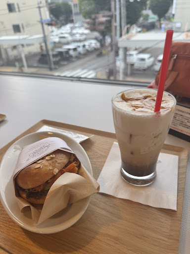 A modern building with a comfortable and spacious interior. Great place to grab a drink and either get some work done or relax. Now, about the food. We had two sandwiches — one with salmon and one with chicken. I didn’t finish the chicken bagel; the spiciness overpowered everything and I couldn’t really taste the chicken. The açaí bowl with chocolate granola was absolutely not worth the ¥1,500. I would’ve chosen something else instead. The French toast (which looked more like pancakes) was overcooked and left a bitter aftertaste — but thank you to the staff for kindly agreeing to remove that item from the bill. It didn’t affect our mood or the overall impression, but it was the first time we’ve had such an issue. The matcha latte and iced caramel latte were both really...