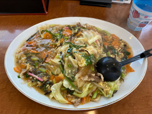 Read more昼ごはんに食べて来ました。 あんかけ焼きそばの普通サイズを注文、宮崎県北部のローカルグルメらしく、専門店が他にも何軒かありました。 直ぐに出来てきました、まずボリュームにビックリしました、食べてみると餡は優しい味付けで、アッサリしていて美味しいです。 麺はちぢれ麺を焼き目が付くまで焼いて有り少し硬めの部分と普通の柔さの部分があり食感の違いが良いです、餡の量に対して麺は少なめなのもあって案外食べ切れます。 それと味変のための調味料が幾つかあって、少しづつ試しながら食べてみました、自分の好みはソースにラー油が好みでした。 他の料理も気になったのでまた...