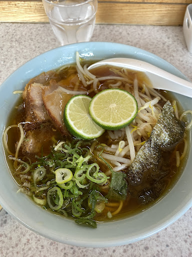 Read more2年程前から行きたいと思っていた丸一ラーメンさんにやっと行ってきました。 へべずラーメン950円に、めし180円をいただきました。 豚骨と鶏ガラでしょうか?聞いてないので分かりませんが、醤油ベースのスープは素晴らしく美味しいです。中太ストレート麺も、スープを持ち上げて旨い。特筆すべきはチャーシューです。材料費高騰の昨今としては、やや厚めにカットされたチャーシューはやや濃いめの味付けだけど、全然しつこくない美味しさ。これはチャーシューだけでめし一杯いけますよ。 あまりの美味しさから、この絶妙なバランスのスープを壊すのではないかと危惧して、どのタイミングで絞るか迷っていたへべずを、思い切ってエイヤーッと(そないたいそうなものではないけれど)三分の一も食べないうちに投入。最初の一口は、うーん、やはりバランスを崩したか?と思ったものの、食べ進むうちにへべずの酸味がスープに馴染んでいく摩訶不思議!これはこれで旨し。結局スープ完飲してしまいました。次はレモンの乗った塩ラーメンを食べてみます。 イヤー、日向市に名店があり...