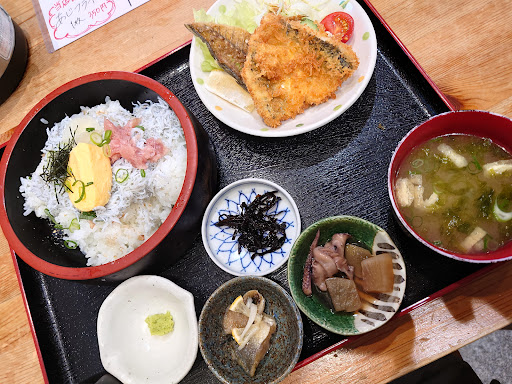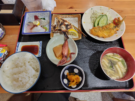 Read more北進車線側にお店はあり、駐車場は5台は余裕で停めることができます。 テーブル席と座敷があり、こじんまりとしています。 メニューがとってもたくさんあるためですものすごく目移りして迷いながら、今回は本日の魚定食を注文。焼き魚に少し時間がかかるとのことだったが、他の料理が配られてからちょっとの間待つくらいで運ばれてきました。 お刺身もフライも焼き魚もとっても美味しかったです。食べている間、続々とお客さんが入ってきましたが、アジフライ定食も人気のようでした。外食の値段が上がっているなか、1000円ちょっとで数種類の料理が味わえるのはとてもいいなぁと思いました。支払いは現金のみです。...