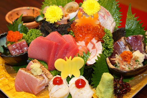 ・そして名物「豪華お造り盛り合わせ」。 これぞ割烹の技!美しく盛り付けられた鮮魚たち。 「豪華お造り盛り合わせ」は旬の素材が楽しめる人気メニューで、この日は奄美大島の本鮪が絶品で、子供が喜んで食べてました! 見て楽しみ、グループで幸福感に満たされる料理なのでオススメです!醤油も美味しく、好相性!