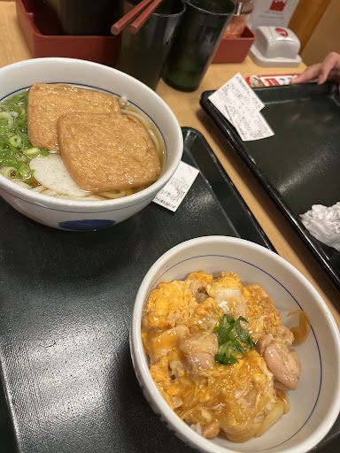 Read more平日夜8時前に家族で初来店。 駐車場、店内はガラガラでした。 しかし、席に着いてゆっくりメニューを選びたかったのだが、入り口の券売機にて買い求める仕様であった為わかりづらく、時間がかかった挙句「これでいいや感」で定番の親子丼とうどんを選びました。続いて来店した3名グループもかなり時間がかかってましたが、これがお昼時だと非常に回転率悪く、購入待ちや後ろから購入を急かされてるストレスがあるんだろうなと感じた。 味は可はなくあえて言うなら不可。チェーン店特有のまぁ安定して「美味い」という感動はなく、薄くぼやけまくりな味でした。鶏はやわらかくて良かったけど。 まぁ次はもう外食先の選...