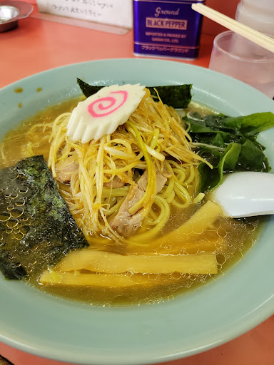 Read more注文は、大きな声で!とかチャーシューやメンマは冷蔵庫から出すのでスープは熱々じゃないです!とか、注文したものが遅い時は、忘れてるかもしれないので声をかけて!とか、諸注意が沢山貼ってあって最初は「めんどくさっ!」と思ってしまいましたが、ラーメンを一口食べたら「はい!わかりました!」と言うことを聞く気になりました😄ラーメンショップの割には油はあっさりめ。だけどしっかりめに塩味もあって、美味しい♥️ネギチャーシュー麺を頂いたのですが、ネギが細く切ってあるので麺に良く絡む。チャーシューは脂身少なめでしっかり味がしみているので、白米にめっちゃあう!ライス注文するとくださる沢庵との相性もばつぐん。好みでした。うちからはめちゃめちゃ遠いけど、温泉に入りに茨城にきたら絶対寄ります。日曜日は12時オープン。終わりの時間もはやいので注意してね。写真取ったのは最初に食...