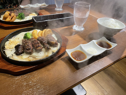 Read more以前から美味しそうな店だと気になってましたがやっと食べに行きました。ちょうど日曜日の昼位に到着しました。待ってる人がいなかったのですが、店内は満席でしたが運良く?(笑)5分位で案内されました。ハンバーグが食べたかったので、ハンバーグとエビフライのランチセットにしました。300グラムのハンバーグは、ボリュームがあり、しっかりした歯ごたえがありナイフでカットすると肉汁があふれて食欲をそそりました(笑)✨エビフライも大きくて衣が薄く美味しかったです。ランチセットにエビフライは追加注文が出来るみたいです。ご飯も非常に美味しかったです。ただメニューには、ご飯のお代わり自由と書いてあったのですが、3杯目か4杯目のお代わりした時に、ご飯を単品で注文して下さいって言われたのが残念でした😢。ステーキを注文してる方が多かったので、今度行く時は、ステーキを食べたいと思います。息子と一緒に行ったのですが、二人共、満足して帰りました。ご飯のお代わりする方...