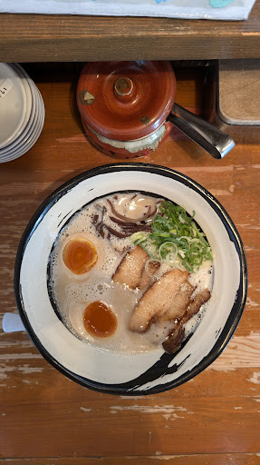 Read more⚫️駐車場は近くに広い所があったので助かりました ⚫️お客さんは誰もいなかったので食べやすかったです✨ ⚫️入口に券売機が🚪ありましたがメニューの写真もないのに選ぶのに困りました ᐡ× ̫ × ᐡ💦 券売機の名前だけでは 全くイメージが湧かなくって…でも女性店員さんは早くして😠って感じの雰囲気だったので何が何かあまりよくわからず同伴者は慌てて頼みました。 ⚫️女性店員さんが接客が雑な感じでした▶︎ちゃんとした理由がありますがここには記載しません。雰囲気も こう言ってはなんですが髪色が明るく柄が悪そうで不快と同伴者は言っていました。(あの人が働いていらっしゃる間は もうここに来ることは無いなって意味の事を言ってましたのでもうここには来ないと思います💦)もっと40代以上ぐらいの落ち着いた人ならなぁと思いました ⚫️チャーシューは𓌉𓇋 🥩ペラペラの薄さなのでとても食べやすかったです ⚫️最初食べた時は悪い意味で( -᷄ ˍ-᷅)ん? って感じだったけど 小魚の炊いたやつ?みたいなのを入れると味に深み?奥行みたいなのがでて美味しかったです。全体的に少なめに感じたのでお腹にも丁度良かったです。 ⚫️麺も🍜細くて 食べやすかったし(同伴者は麺が( ̄▽ ̄;)😓って言ってましたが) ⚫️🥟餃子も...