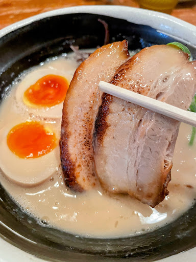Read more木曜日の13時過ぎの到着。国道沿いのお店で無料駐車場が8台あって嬉しいです。着いた時は6台ほど空いてました。外待ちはありませんでした。 お店に入るとすぐ右手に食券機があります。現金の他にもペイペイが使えたので嬉しかったです。 店内はカウンター6席ほどとテーブルが3卓ほど。カウンター席を案内され、麺の硬さを尋ねられますのでハリガネでお願いして静かに待ちます。 程なく到着したのは、写真の濃厚とんこつ「てっぺいラーメン」940円税込。 泡立ったスープにチャーシュー、青ネギ、味玉1個、そしてキクラゲがたくさん。王道で豪華なとんこつラーメンです。 先ずはスープをひと口。クリーミーでしっとり濃厚です。コピーに偽りはありません。塩味濃いめです。 ハリガネでお願いした麺は極細。見ただけでウキウキします。歯ごたえは意外にしっとりもっちり。でも極細でスープを絡めあげてきてより美味しいです。 チャーシューは炙りでトロントロン。柔らかくて味付け濃厚です。細切れキクラゲはコリコリとした歯ごたえが気持ちよくて美味しいやつ。 替玉もありますが量が結構しっかりで私は十分満足でした。 久しぶりにリーズナブルで美味しいとんこつラーメンに出会いました。満足で...
