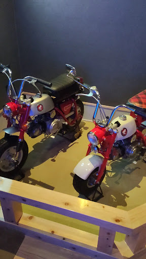店の入り口を入ると初期型た2代目モンキーが綺麗にレストアされた飾られてました。 席に座るとアンティークの壁掛け時計とブリキのおもちゃが目に付きました。