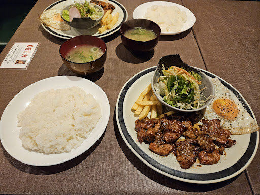 平日ランチで初めて訪れました。 店内はやや狭く、大きな本棚には漫画本がぎっしり詰まり、何となくですが雑然とした雰囲気の店でした。店主さんも女性の方も感じはよかったです。テーブル席6~7つ、カウンター3席。 日替わりランチ900円のほかに千円前後のお得なランチが6つありました。 厚切り豚生姜焼き980円にホットコーヒー100円を付けました。柔らかい豚肉は量が多めで、生姜焼きのタレは私好みでした。付け合わせは目玉焼き、あっさり塩味のフライドポテト、ドレッシングがおいしいサラダ、みそ汁と全体量がありました。ご飯は200g以上はありそうな量です。ホットコーヒーはブラックで飲みやすく食後にピッタリでした。 おいしかったです! 店の前を通りかかることが多々ありましたが、もう少し早くに敦館さんを知っていたら…と思いました。 ランチタイムは禁煙でした。 店...