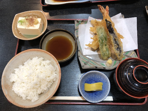 私は天ぷら定食、妻は銀だら煮定食、単品でアジフライとホタテバター焼を頂きました。 どれも非常に美味しく、特にホタテバター焼には2人とも感動しました。ホタテの甘さをとても感じることができ、市原市に来た際はまた味わいたいと思いました。レモンをかけるとさらに美味しくなります! 天ぷらは茄子、ピーマン、鱚?が一つずつに、海老が二つです。油切れがとてもよく、軽くて美味しい天ぷらです。特に海老はプリプリで大きく、大変満足しました。銀だら煮は濃いめの味付けで、ご飯がとても進みます。アジフライはサクサクの衣に、アジのジューシーな身が包まれていて、ソースとからしを付けていただくと、とても美味しかったです。
