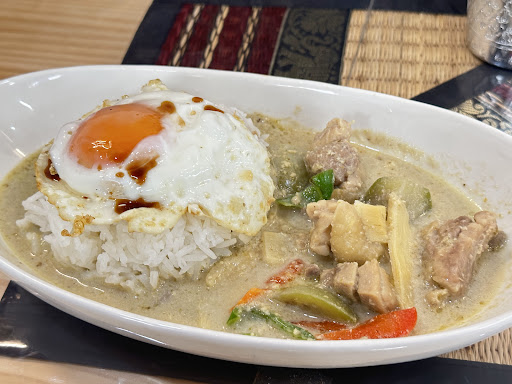 Read moreお店のホームページで、 月曜店休でも、祝祭日は営業との事で来てみたら休みでした… 後日、ホームページで見たランチセット目的で入店したら、? 食事スペースが見当たらず、 タイ人の?無愛想な店員さんに聞いたら 店舗入って右手の片隅の イートインスペースへ案内されましたが、壁に向かって横一列の席しか無く、7〜8人座ればイッパイの極小スペース、店内は蒸し暑い… メニューを見るも、ランチセットが見当たらず、店員さんに聞いたら、 アリマセンネ〜、との事…? まあ、ネット情報はそんなものだど、 気を取り直し、無難にガパオライスを注文、ごく普通のガパオライスでしたが、乗っかっている目玉焼きが固焼きだったのが残念でした。 今後に期待は… デ...