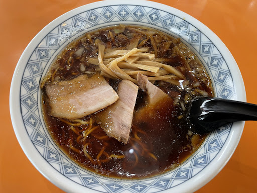 Read more仕事で市原市役所に行く道すがらで探してこちらを発見。最初、餃子の王将かと思いましたが!ガッカリ地元店でした(笑)広いので20名位の収納力があります。オススメと書いてあったチャーシュー麺を注文。見た目は富山ブラック+喜多方坂内のような感じで、醤油の黒みが濃いスープにバラバラとチャーシューが散らばっています。スープは富山ブラックの西町大喜よりはいろは寄りで、塩味は強いものの充分飲めます。チャーシューはロース系ですが、適度に脂身もあり、トロットロに柔らかくて溶けるレベルです。ただ、やはり醤油の塩味は強いです。麺はTHE中華麺といった感じの中太麺。ただ、茹で時間が長いのか、少し柔らか過ぎな感じ。麺は硬めでオーダーしたほうが良いかも。テーブルに置いてあるおろしニンニクを加えると、少し西町大喜寄りになります。昔ながらの老舗なんでしょうね。なかなか美味しかったです。近くに住んでいたら、たまに...