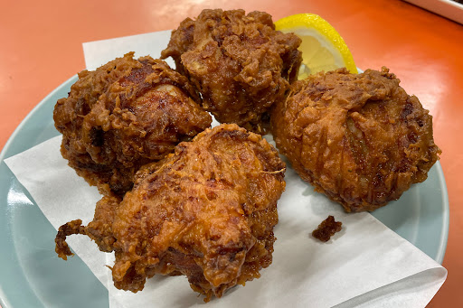 んで、日曜日の昼間にきたのですが、 特に待つこともなくするっとは入れ、 ヌルっと座れました。 独特のおばちゃんのノリに圧倒されつつ注文をし、 チャーハンと唐揚げを注文するのですが、 デカいから唐揚げ2個にしておけば?的なことを言われました。 しかし、漢の5個を注文。