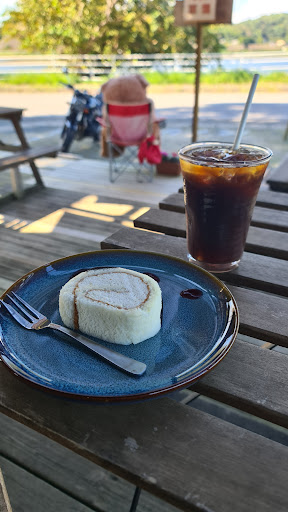 店内とテラスでいただくことができます。店内と迷ったのですが、天気もよかったのでテラスでいただきました。ちなみに店内は靴を脱いであがります。 注文したのは季(とき)ブレンドのアイスと、うし柄ロールケーキをいただきました。 コーヒーは酸味が少なく、苦味を感じられて、個人的には好きな味でした。 ロールケーキは濃厚な甘味でコーヒーとよく合いました。ロールケーキの皿に付いているブルーベリーソースですが、食べる前に写真を撮っていたら匂いを感じました。これがまたロールケーキと上手くマッチして美味でした。 ジャズのような落ち着いたBGMを聴きながら、心地よい風を感じられて、眼前の高滝湖を眺めながら美味しいコーヒーをいただくという贅沢な、そして幸せな時間を過ごすことができました。そして店内からたまに薫る珈琲豆の匂いがまたよかったです。 今度は高滝湖ブレンドをいただきたいです。