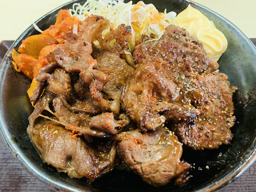 Read moreプレミアム焼肉丼(小)+Bセット(肉味噌温玉サラダ、卵スープ)を食べました。 切りたて牛肉専門店と書いてあり注文場所に肉のブロックがでーんと置いてあるので、その場でスライスするのかなと思いましたが、普通にカット済みの肉をはかりに載せていて少し肩透かしです。 お肉は注文を受けてから一枚ずつ焼き上げるので提供までの時間が結構かかります。 支払いが商品受け取り時なので、これそのまま居なくなったりしたらどうするんだろと益体もない事が気になったりしました。 また、フードコートにあるお店なので、当然家族でバラバラなお店で頼むこともあるわけですが、受取時に支払いだといちいちお支払い担当が付いてこないといけないわけで、これは結構マイナスポイントじゃないでしょうか。 食べる直前にお金触りたくもないですしね。