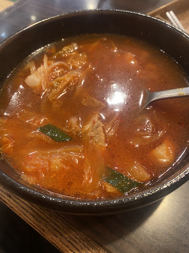 ユッケジャンスープが着いてきます 日により味が異なりますが まずまずの出来でしょう!