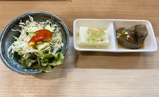 というか、外の麺の看板に釣られて入りましたが ラーメン屋さんじゃなく、定食屋さん? お通し?に奴と茄子。どちらも美味しいです。