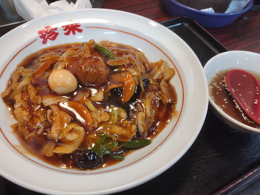 今回はタンメンを注文しました。二郎系ラーメンには及びませんが、炒め野菜の量や種類もさることながら豚肉の量もそれ也に入っています。 安価でボリューム感あるメニューが珍来の“売り”でしょうか…。 チェーン店の餃子としては大きめで普通のお店の餃子と比べてもふた周り程の大きさでこれも価格に見合った美味しさです。チェーン店でありながらこれ程までに大きな餃子を提供して、安くて美味しいお店は東京の西多摩地区にある東京(とんきん)亭くらいしか知りません。 持ち帰りを別に注文する方もいるくらいですから餃子の人気の高さが覗えます。