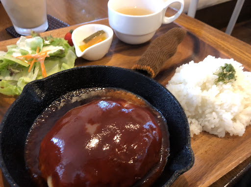 Read more駐車場が少なく、パッと見わかりにくい。店内も外から見えづらいから入りにくいかも。平日の昼間でしたが、お客さんは他になし。 ランチでハンバーグを注文。一人でやっているからか、待ち時間はやや長め。しかし、値段と味、量は満足。生たまねぎ使用か、シャキシャキ感楽しめます。飲み物はフラペリッチのキャラメル。軽めのフラペチーノみたいな感じ。 子連れに優しい店で、キッズスペースやオムツ交換部屋などあり。 サーモンとイクラ丼はなくなったかな? ジョイフルホンダ近くなので買い...