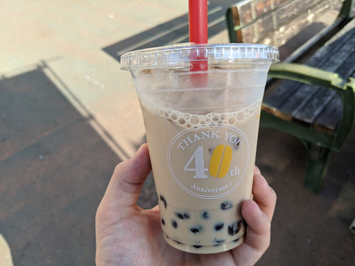 先にタピオカ抹茶ミルクを渡され 席に着く タピオカ抹茶ミルクには多めの氷 甘さは満足いくくらいの甘さ