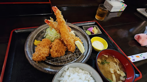 My wife has a Menchi-katsu set meal I ordered.