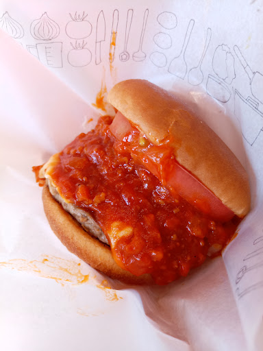 Read more調理された方のコダワリと創意工夫が詰まったスパイシーモスチーズバーガーです。 トマトソースが前面に溢れ返ってる🤩🤩このバーガーならではに特化した仕上げなんです! ひと口目に噛み込んだらソースをすするんです、ズズってな具合で😚もぅたまらんですわ😋😋いろんな感触とソース&ピクルス&スパイシーが混然となってハーモニーを奏でます〜しあわせいっぱいの逸品となるわけです。後半でソースが包み紙に溢れて少し後ろ髪引かれるような残念感が無いのもポイント高い👍👍 素晴らしいお仕事です。チェーン店でこれだけのポテンシャルあるのもモスだからこそでし...